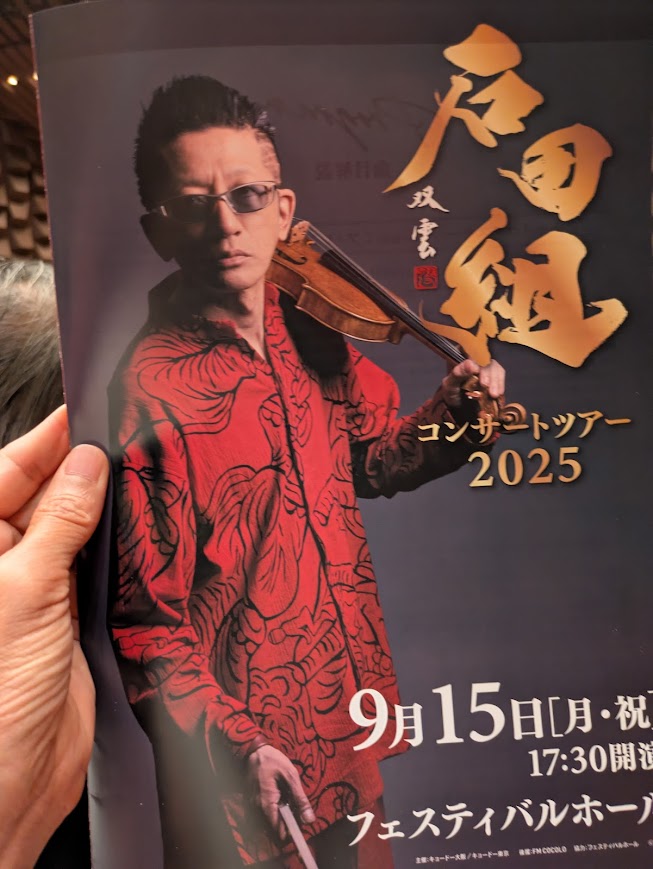 アンコールでは丈の長い衣装に身を包み、右手に持つ弓と左手に持つヴァイオリンがまるで、刀と鞘のようないでたち。ほんと、や〇ざの親分そのものです。なのに、音はとても繊細。。。